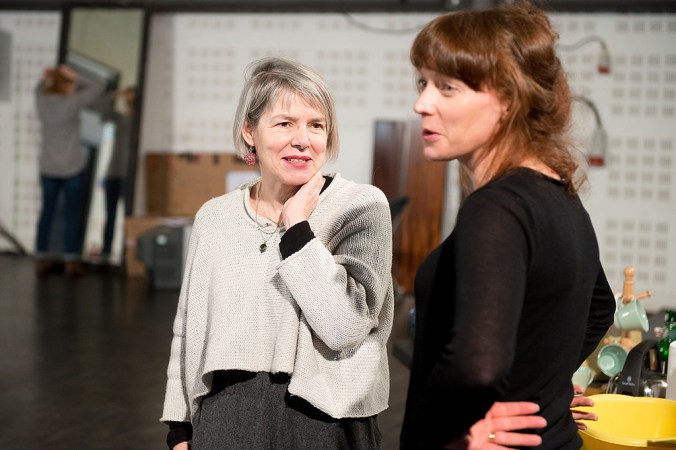 Rona Munro and cast member Lucianne McEvoy in rehearsal for Bold Girls at Citizens Theatre, Glasgow, 2018 (photo by Tim Morozzo)