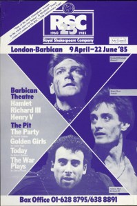 Royal Shakespeare Company poster for 1985 Barbican season, including Robert Holman’s Today