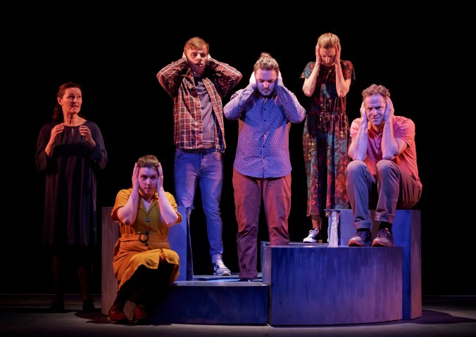 The cast of What I (Don’t) Know About Autism at the Abbey Theatre (Peacock), Dublin, 2020: Paula McGlinchey, Eleanor Walsh, Shay Croke, Jayson Murray, Jody O’Neill & Matthew Ralli (photo Ros Kavanagh)